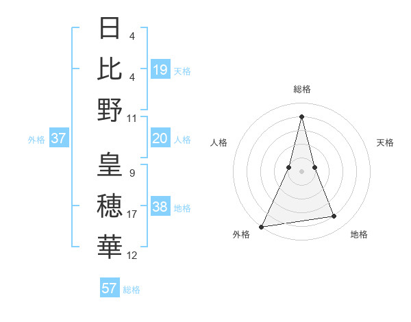 日比野 皇穂華さんを姓名の画数から五運を鑑定