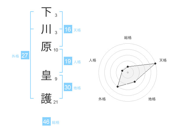 下川原 皇護さんを姓名の画数から五運を鑑定