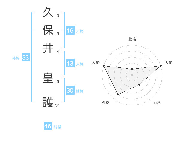 久保井 皇護さんを姓名の画数から五運を鑑定