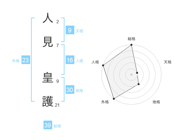 人見 皇護さんの地格は30画の2点!