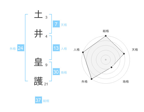 土井 皇護さんの総格は37画の5点!