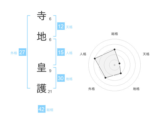 寺地 皇護さんを姓名の画数から五運を鑑定