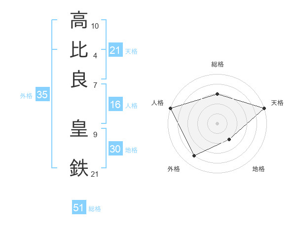 高比良 皇鉄さんを姓名の画数から五運を鑑定