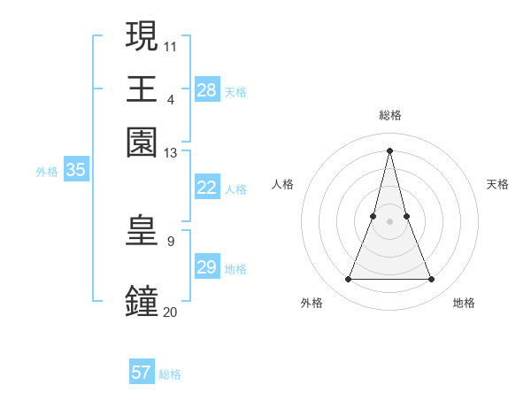 現王園 皇鐘さんを姓名の画数から五運を鑑定