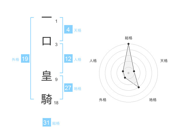 一口 皇騎さんの総格は31画の5点!