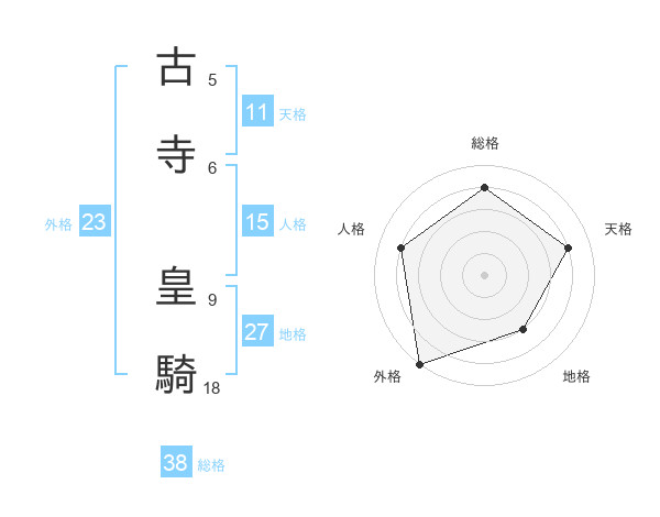 古寺 皇騎さんを姓名の画数から五運を鑑定