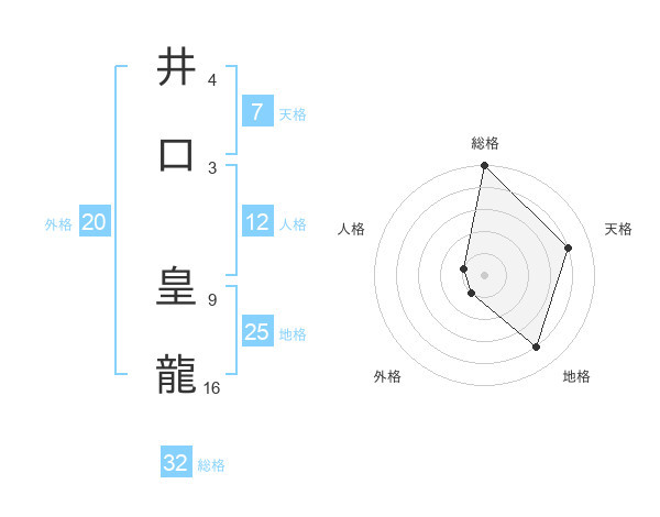 井口 皇龍さんの総格は32画の5点!