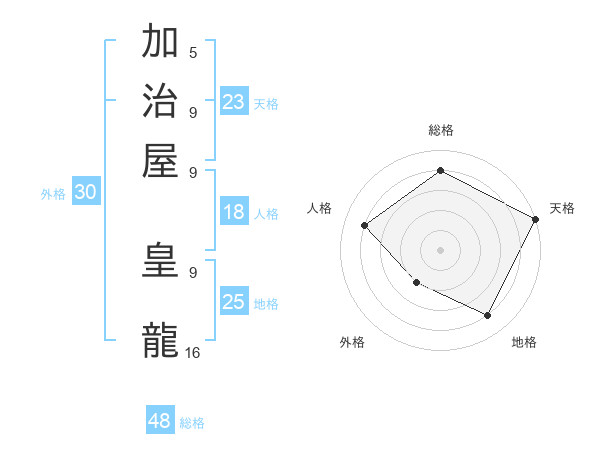 加治屋 皇龍さんを姓名の画数から五運を鑑定