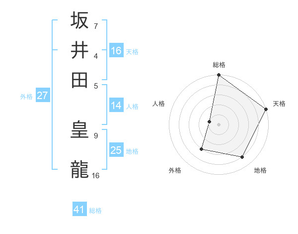坂井田 皇龍さんの総格は41画の5点!