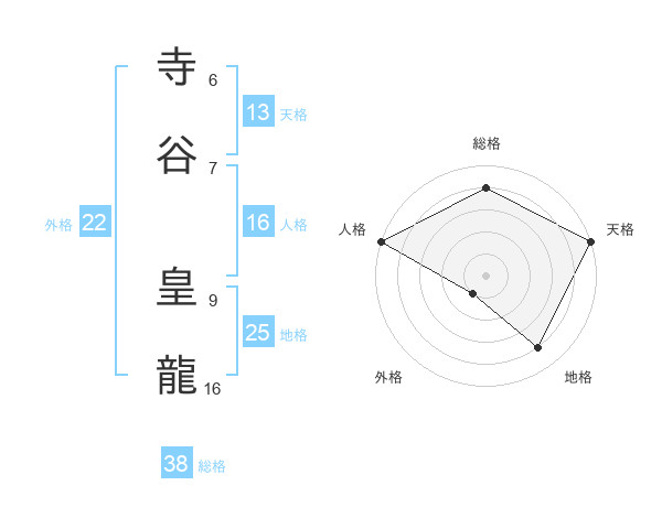 寺谷 皇龍さんの外格は22画の1点!