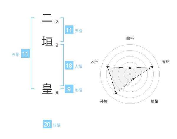二垣 皇さんの外格は11画の4点!