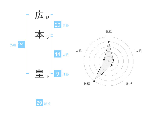 広本 皇さんの総格は29画の4点!