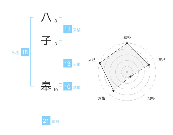 八子 皋さんの総格は21画の5点!