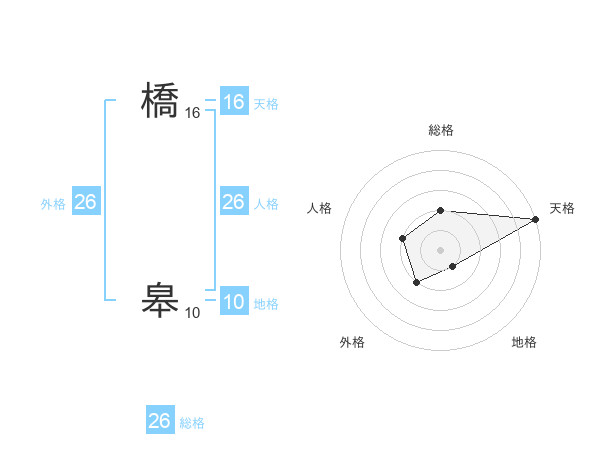 橋 皋さんの総格は26画の2点!