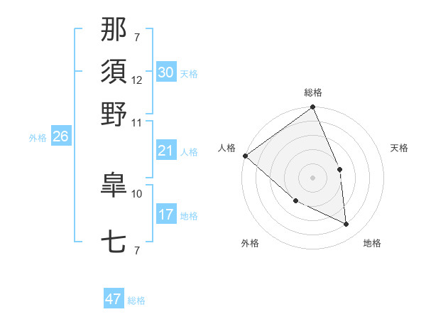 那須野 皐七さんの総格は47画の5点!