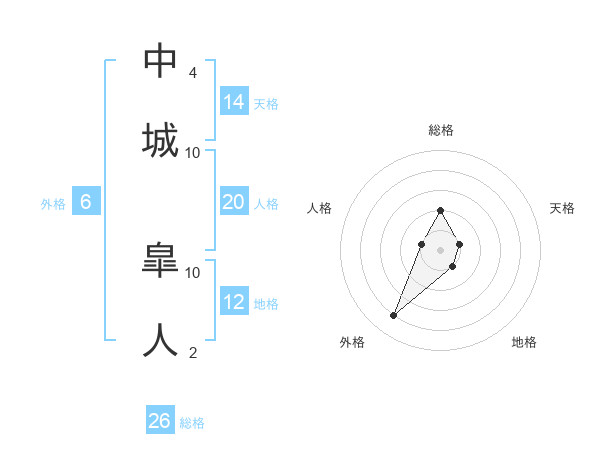 中城 皐人さんの総格は26画の2点!
