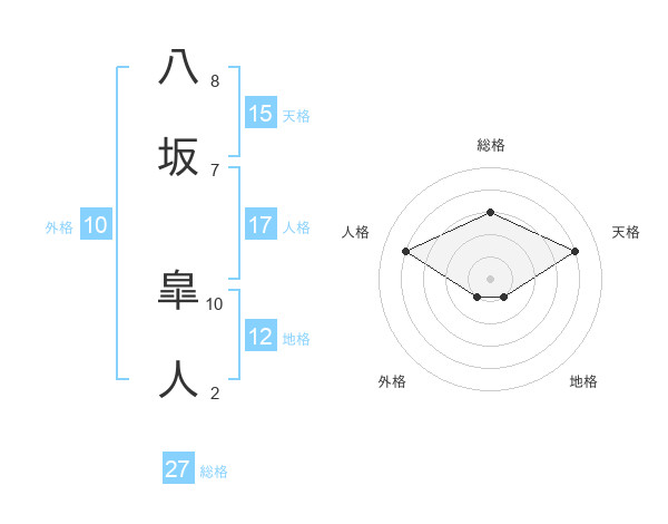 八坂 皐人さんを姓名の画数から五運を鑑定