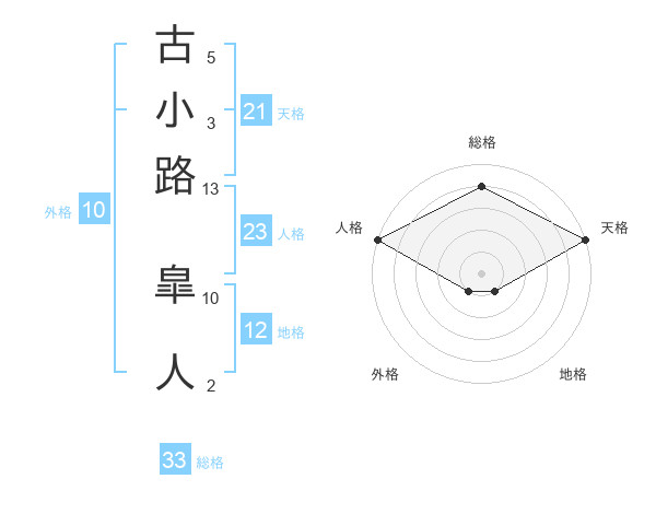 古小路 皐人さんの天格は21画の5点!