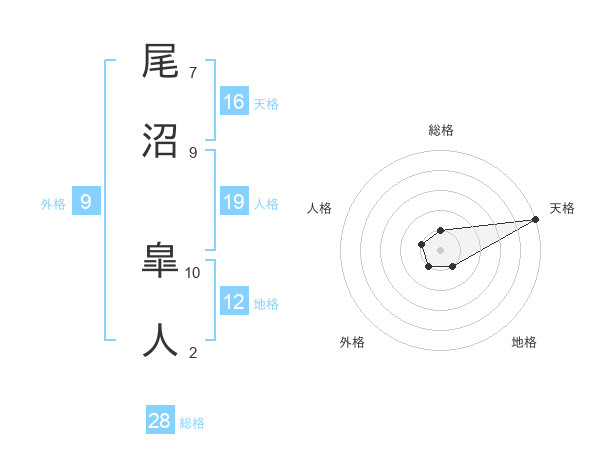 尾沼 皐人さんの天格は16画の5点!