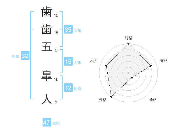 歯歯五 皐人さんを姓名の画数から五運を鑑定