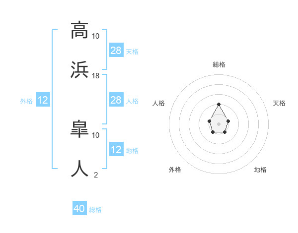 高浜 皐人さんの総格は40画の2点!