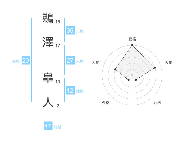 鵜澤 皐人さんの総格は47画の5点!