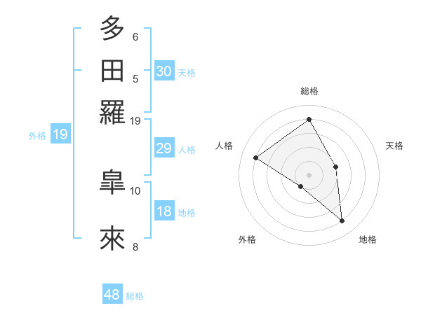 多田羅 皐來さんを姓名の画数から五運を鑑定