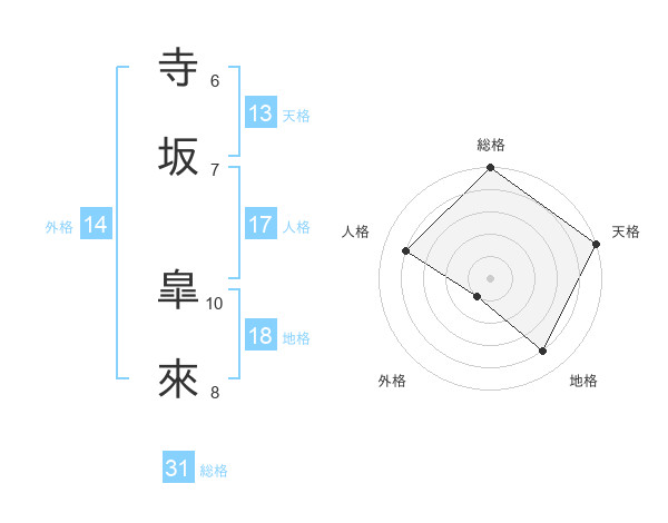 寺坂 皐來さんの天格は13画の5点!