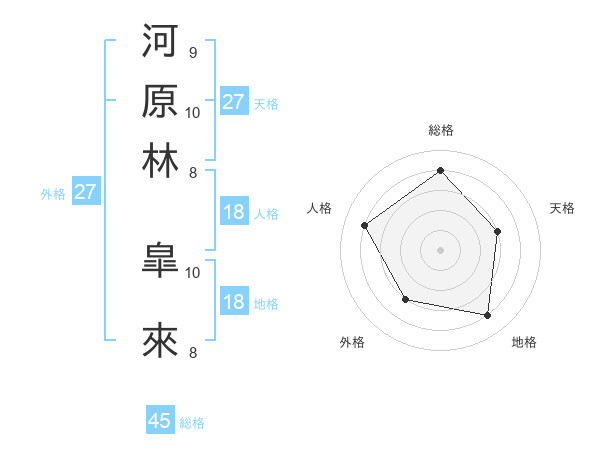 河原林 皐來さんの総格は45画の4点!