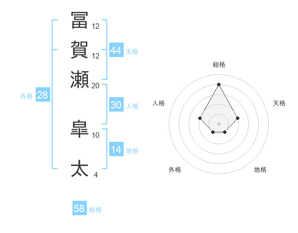 冨賀瀬 皐太さんを姓名の画数から五運を鑑定