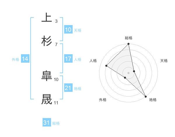 上杉 皐晟さんの総格は31画の5点!