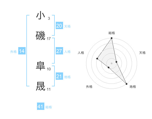 小磯 皐晟さんの外格は14画の1点!