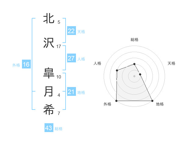 北沢 皐月希さんの外格は16画の5点!