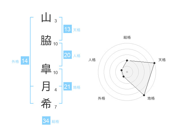 山脇 皐月希さんの天格は13画の5点!