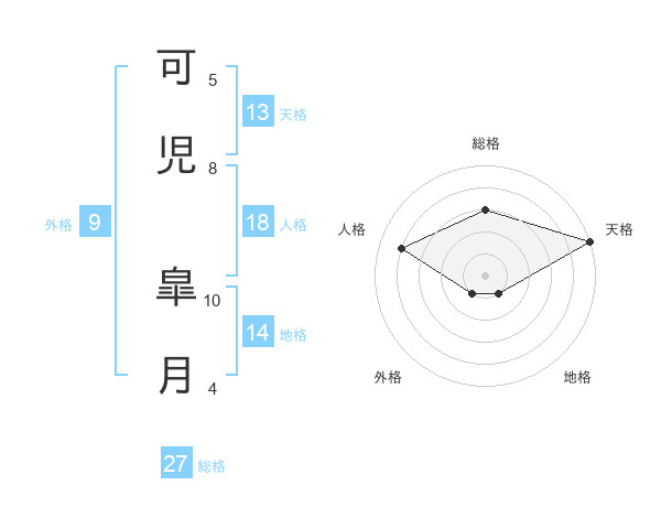 可児 皐月さんの総格は27画の3点!