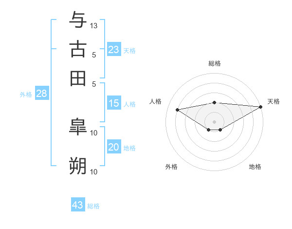 与古田 皐朔さんを姓名の画数から五運を鑑定