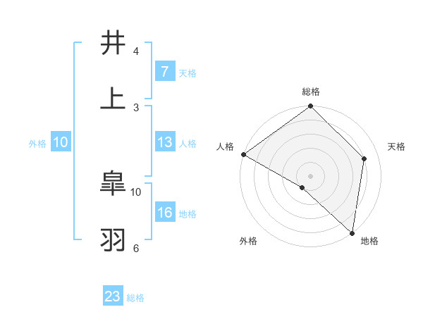 井上 皐羽さんを姓名の画数から五運を鑑定