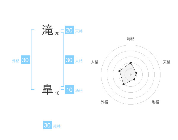 滝 皐さんの総格は30画の2点!