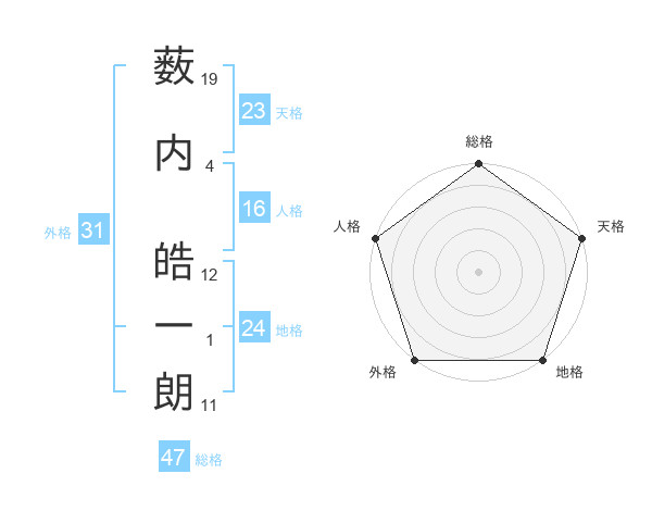 薮内 皓一朗さんを姓名の画数から五運を鑑定