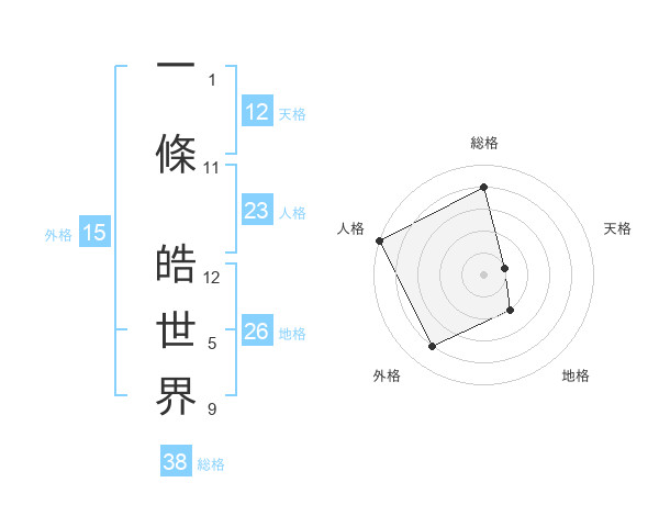一條 皓世界さんを姓名の画数から五運を鑑定