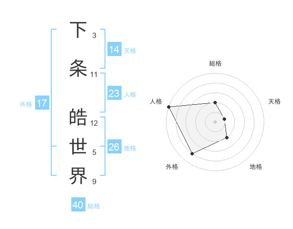 下条 皓世界さんの外格は17画の4点!