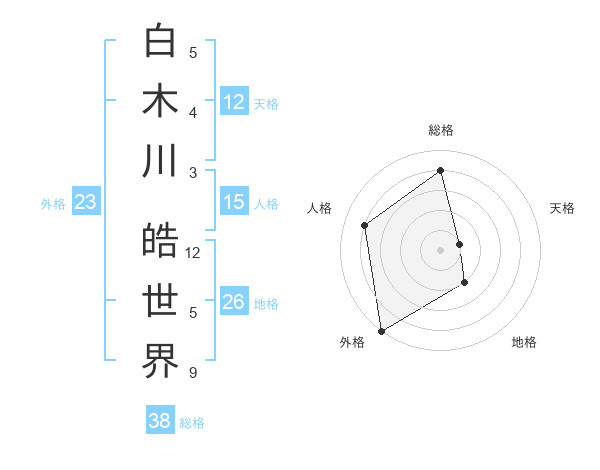 白木川 皓世界さんを姓名の画数から五運を鑑定