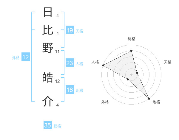 日比野 皓介さんを姓名の画数から五運を鑑定