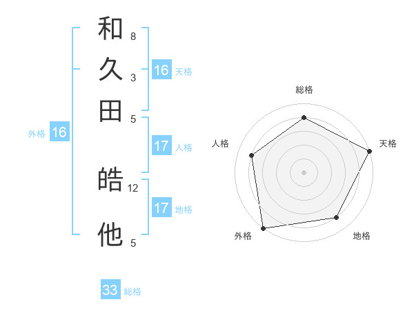 和久田 皓他さんを姓名の画数から五運を鑑定