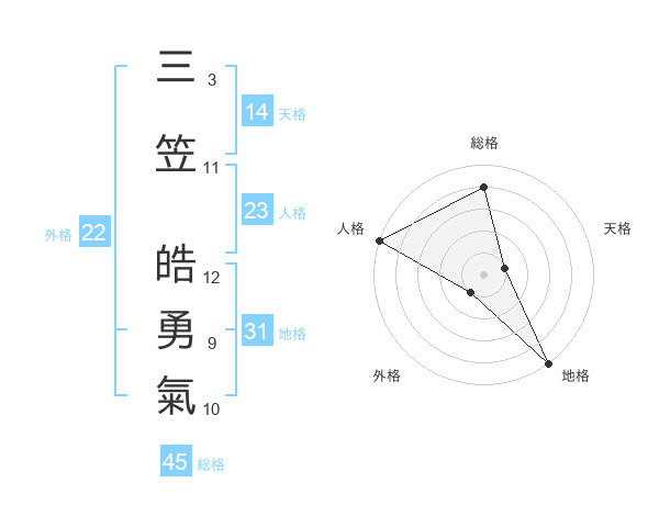 三笠 皓勇氣さんを姓名の画数から五運を鑑定