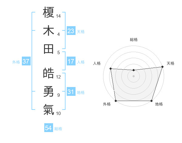 榎木田 皓勇氣さんの天格は23画の5点!