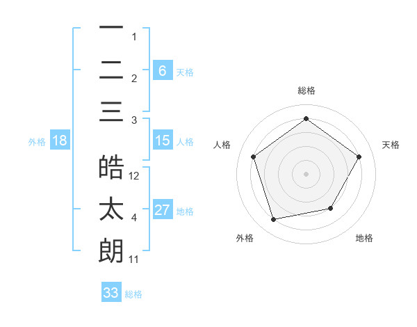 一二三 皓太朗さんを姓名の画数から五運を鑑定