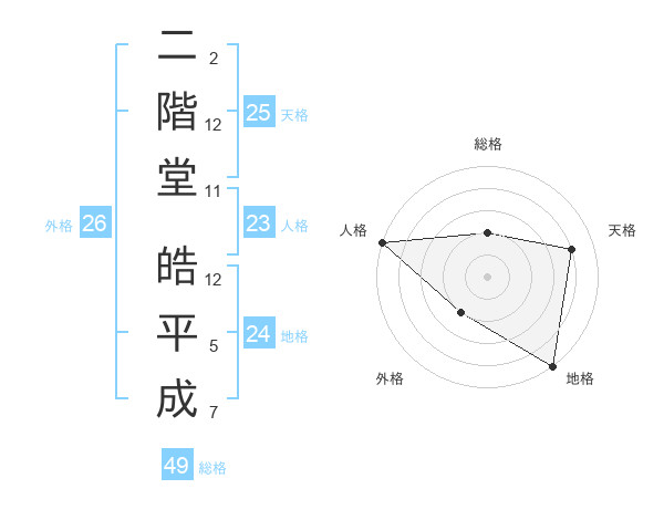 二階堂 皓平成さんを姓名の画数から五運を鑑定