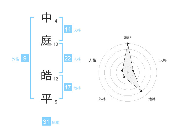 中庭 皓平さんの総格は31画の5点!
