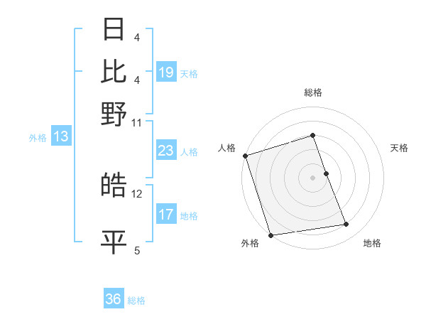 日比野 皓平さんの外格は13画の5点!